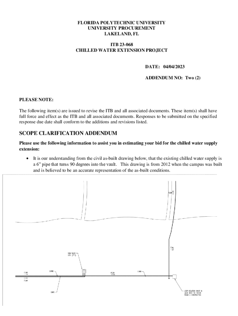 FLORIDA POLYTECHNIC UNIVERSITY PROCUREMENT LAKELAND, FL ITB 23068 CHILLED WATER EXTENSION PROJECTILE: 04/04/2023 ADDENDUM NO: Two (2)PLEASE NOTE: The following item(s) are issued to revise the ITB