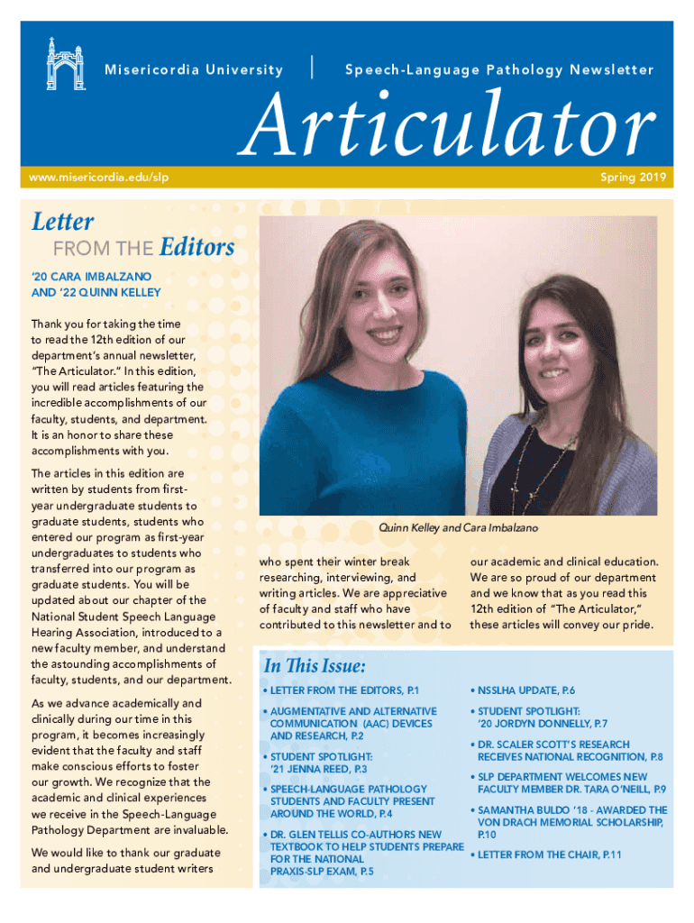 M i s e r i c o rd i a U n i v e r s i t ywww.misericordia.edu/slpSpeechLanguage Pathology NewsletterArticulatorSpring 2019LetterFROM THE Editors20 CARA IMBALANCE AND 22 QUINN KELLEYThank you for