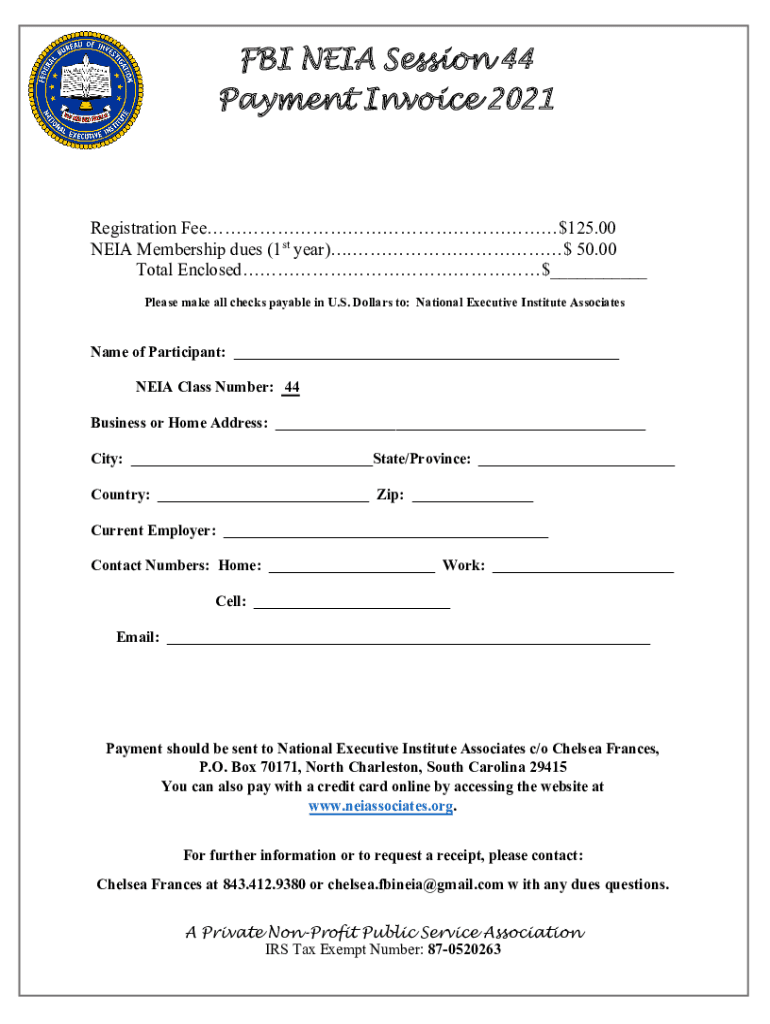 Please make all checks payable in U.S. Dollars to: National Executive Institute