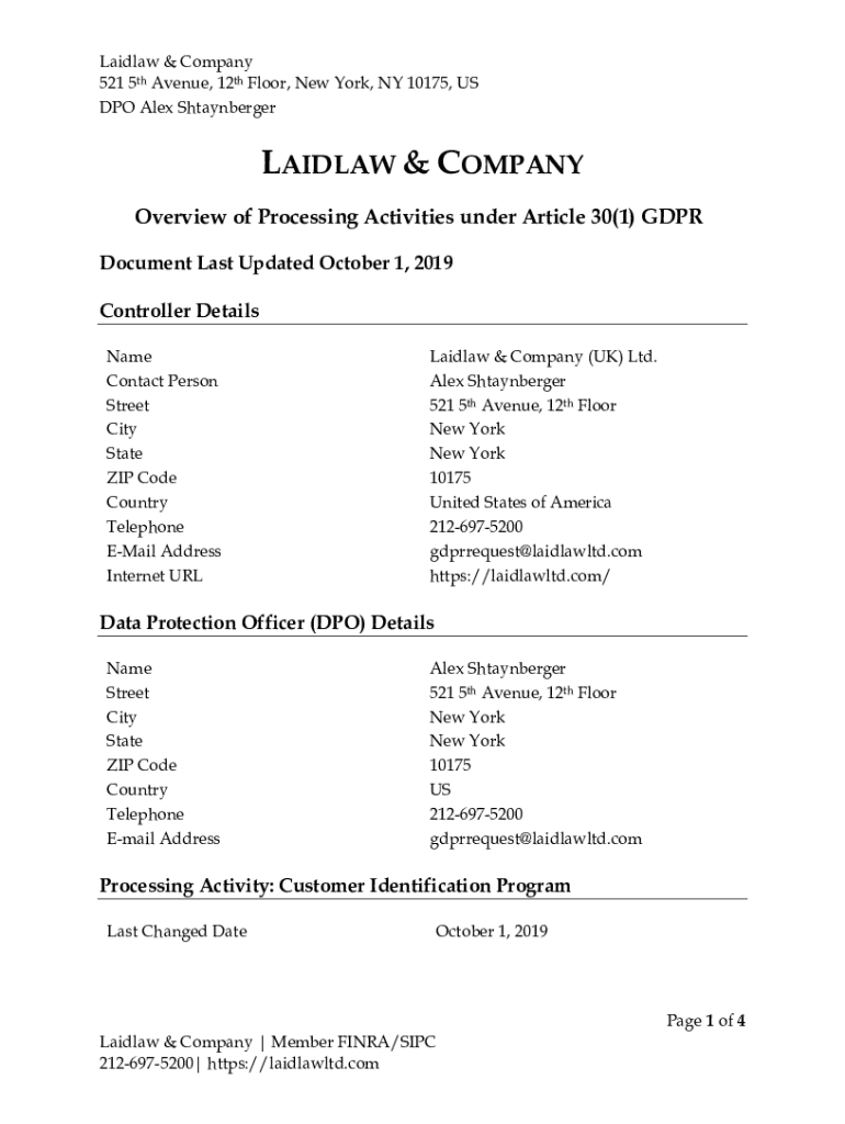 Overview of Processing Activities under Article 30(1) GDPR