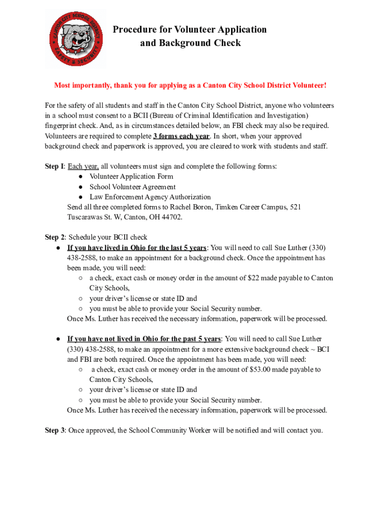 Procedure for Volunteer Application and Background Checkout importantly, thank you for applying as a Canton City School District Volunteer! For the safety of all students and staff in the Canton City