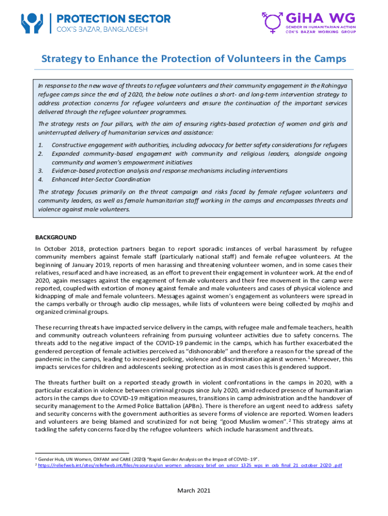 Strategy to Enhance the Protection of Volunteers in the Camps In response to the new wave of threats to refugee volunteers and their community engagement in the Rohingya refugee camps since the end