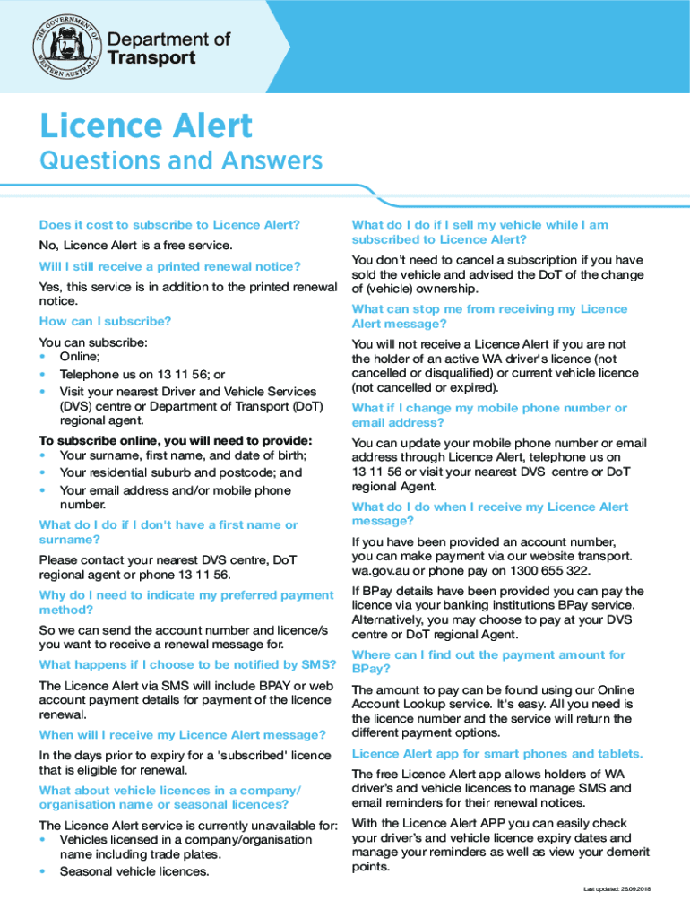 Get the free Licence Alert Questions and Answers (Fact Sheet). Licence Alert Questions and Answer...