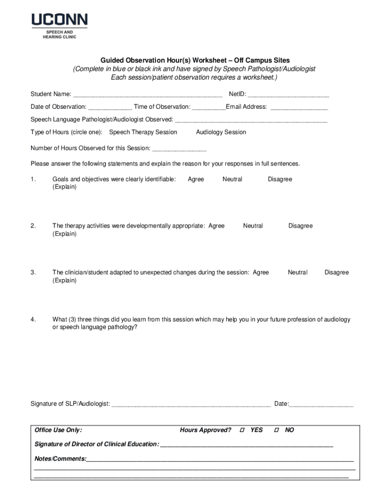 Get the free Guided Observation Hour(s) WorksheetOff Campus Sites - slhs uconn
