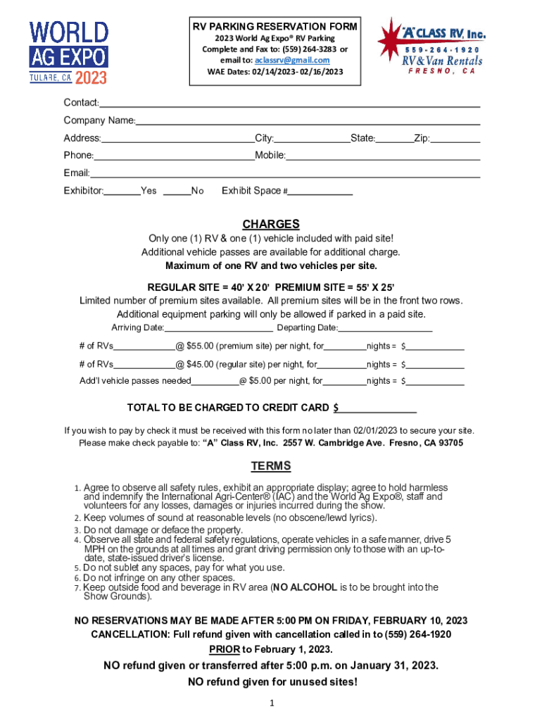 How to fill out rv parking reservation form