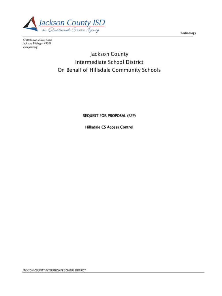 Technology 6700 Browns Lake Road Jackson, Michigan 49201 www.jcisd.orgJackson CountyIntermediate School District Behalf of Hillsdale Community SchoolsREQUEST FOR PROPOSAL (RFP) Hillsdale CS Access