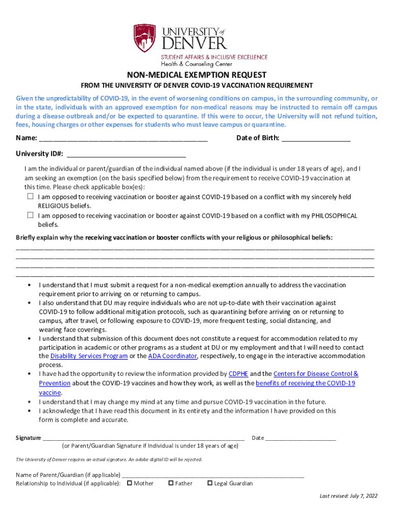 Get the free NON-MEDICAL EXEMPTION REQUEST - DU Student Affairs