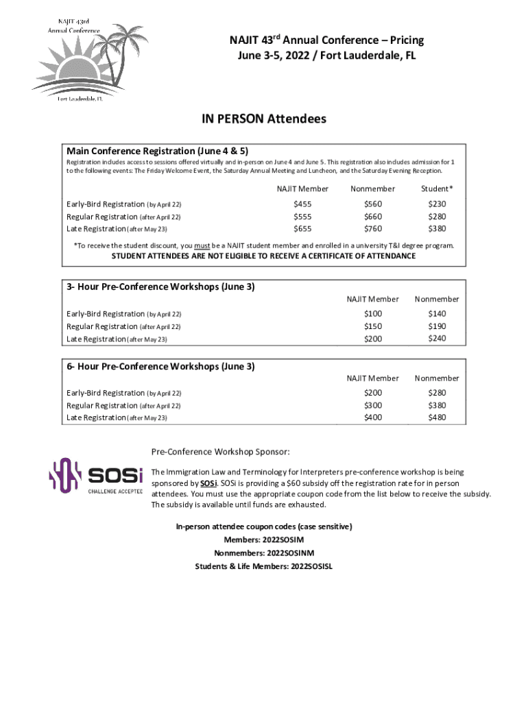 NAJIB 43rd Annual Conference Pricing June 35, 2022 / Fort Lauderdale, FLIP PERSON Attendees Main Conference Registration (June 4 & 5)Registration includes access to sessions offered virtually and
