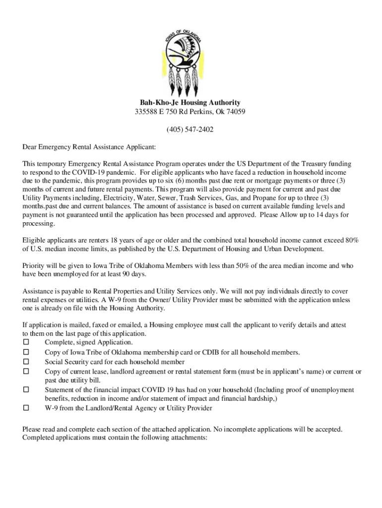 Backhoe Housing Authority 335588 E 750 Rd Perkins, Ok 74059 (405) 5472402 Dear Emergency Rental Assistance Applicant: This temporary Emergency Rental Assistance Program operates under the US Department