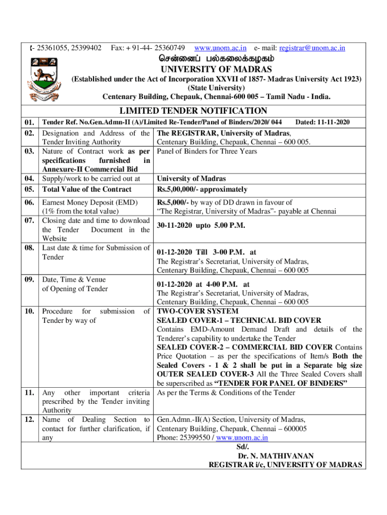 25361055, 25399402Fax: + 9144 25360749www.UNM.ac.in email: registrar@unom.ac.innrd;IDG; GY;fief;folk; UNIVERSITY OF MADRAS (Established under the Act of Incorporation XXVII of 1857 Madras University