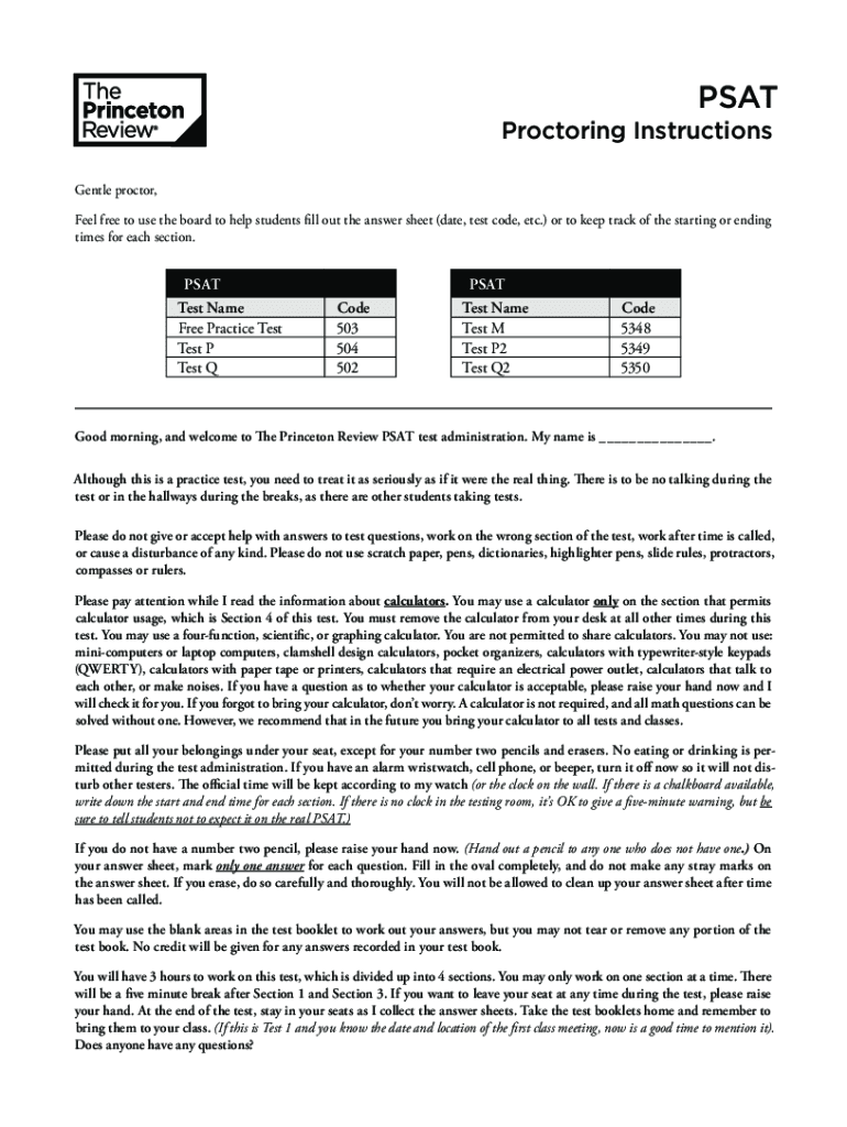 Students who are taking the PSAT exam are required to fill out and submit the scantron sheet with their answers.