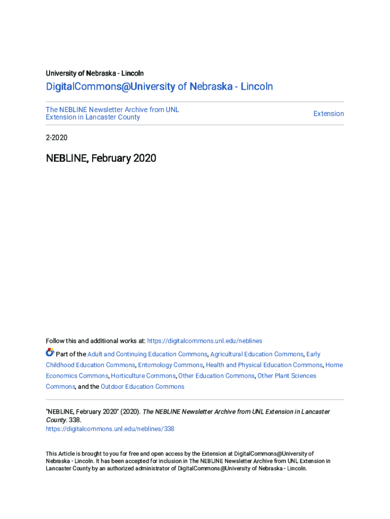 University of Nebraska LincolnDigitalCommons@University of Nebraska Lincoln The NEWLINE Newsletter Archive from UNL Extension in Lancaster CountyExtension22020NEBLINE, February 2020Follow this and