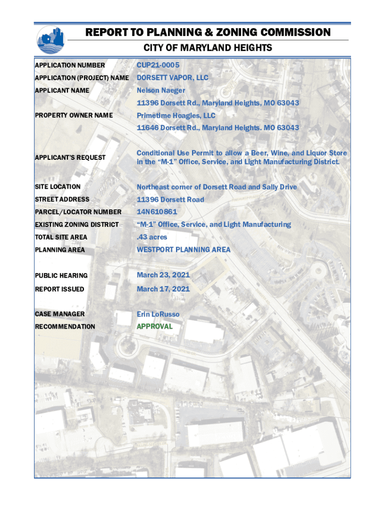 REPORT TO PLANNING & ZONING COMMISSION CITY