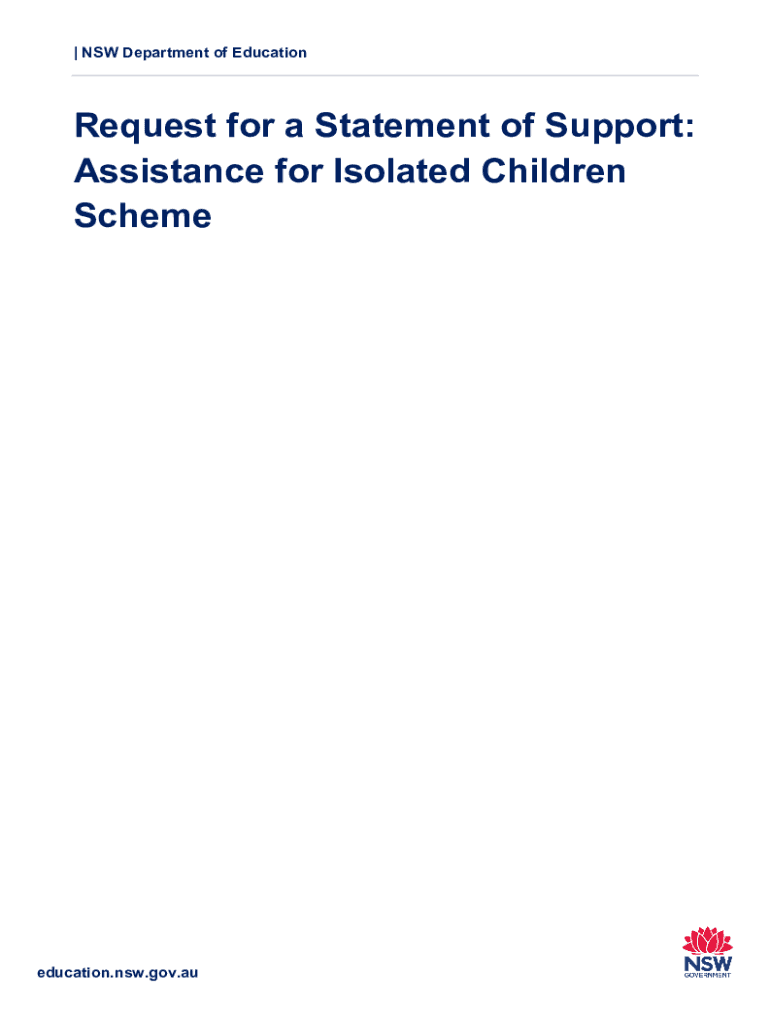 | NSW Department of EducationRequest for a Statement of Support: Assistance for Isolated Children Scheme education.NSW.gov.student needs to be removed from a local school 4.3.5.4 The Department of
