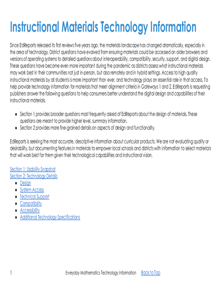 Instructional Materials Technology Information Since Reports released its first reviews five years ago, the materials landscape has changed dramatically, especially in the area of technology. District