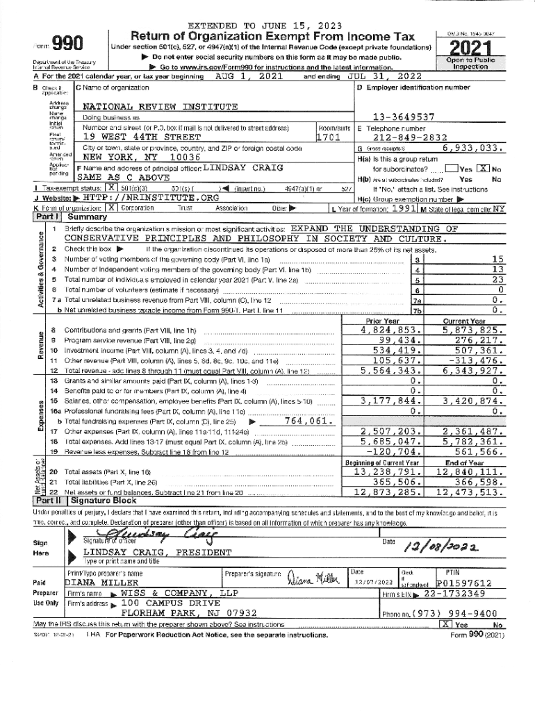 Nonprofit organizations like the National Review Institute are required to file with the IRS.