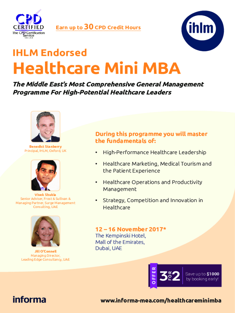 Earn up to 30 CPD Credit HoursIHLM EndorsedHealthcare Mini MBA