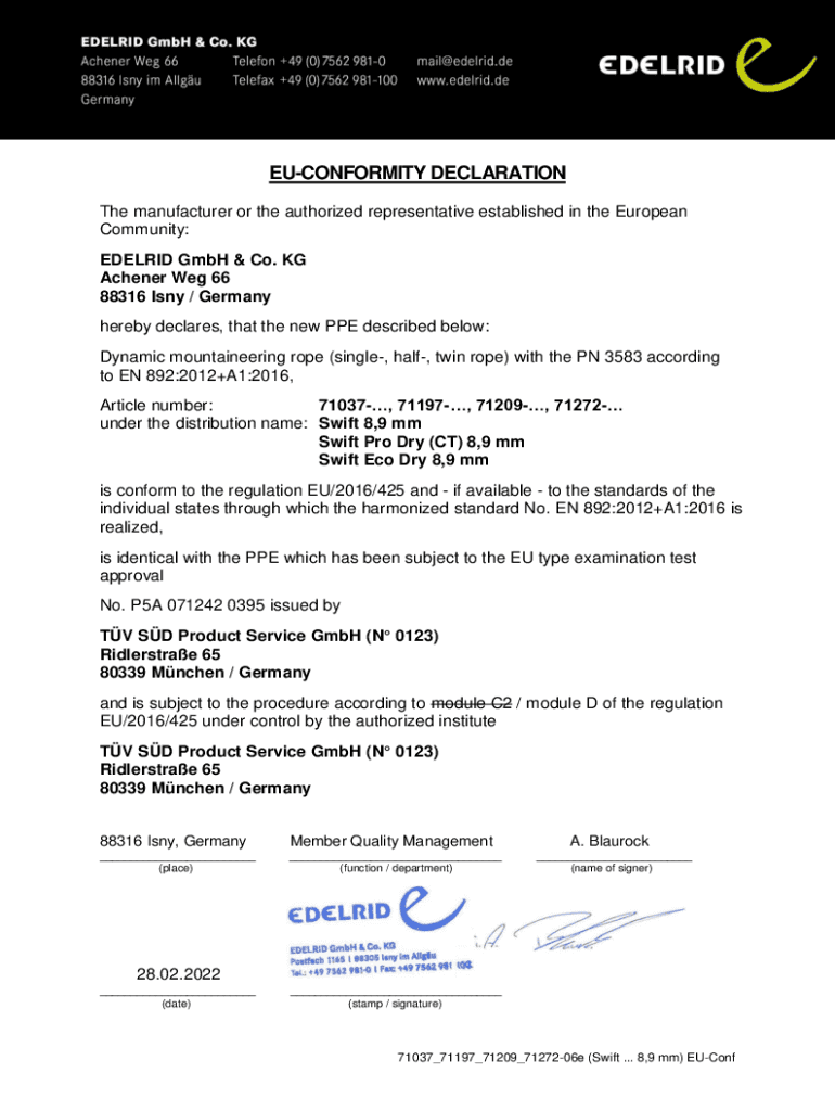 CONFORMITY DECLARATION The manufacturer or the authorized representative established in the European Community: EYELID GmbH & Co. KG Achenes WEG 66 88316 ISN / Germany hereby declares, that the new