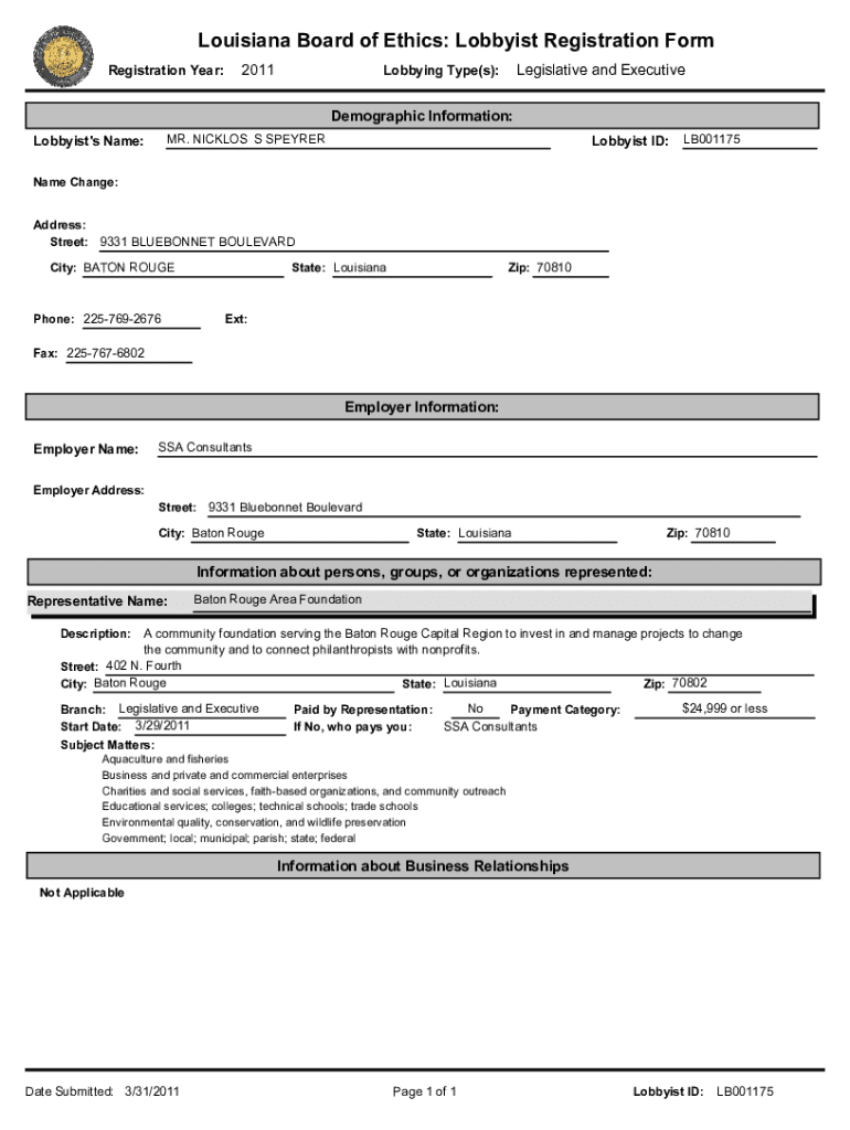 Louisiana Board of Ethics: Lobbyist Registration Form