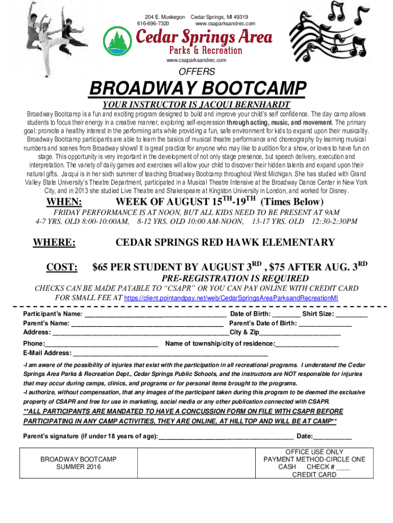 Fill out your broadway bootcamp online with pdfFiller!