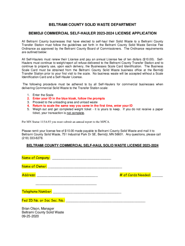 How to fill out beltrami county solid waste