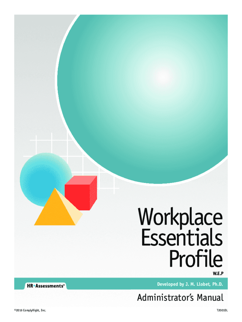 Workplace Essentials Profile W.E. Developed by J. M. Globe, Ph.D. Administrators Manual 2016 Comply Right, Inc. T2001DLTable of Contents Assessment Products: An Investment in Your Companies Future.