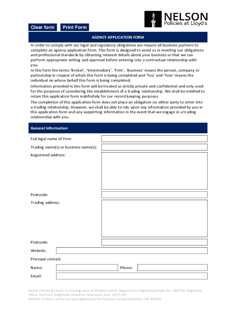 Clear footprint Form AGENCY APPLICATION Forming order complying with our legal and regulatory obligations we require all business partners to complete an agency application form. This form is designed