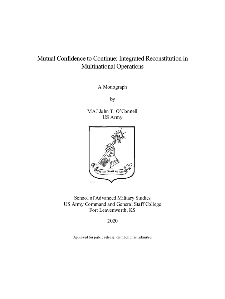 Mutual Confidence to Continue: Integrated Reconstitution in Multinational Operations A Monograph by MAJ John T. O'Connell US Preschool of Advanced Military Studies US Army Command and General Staff