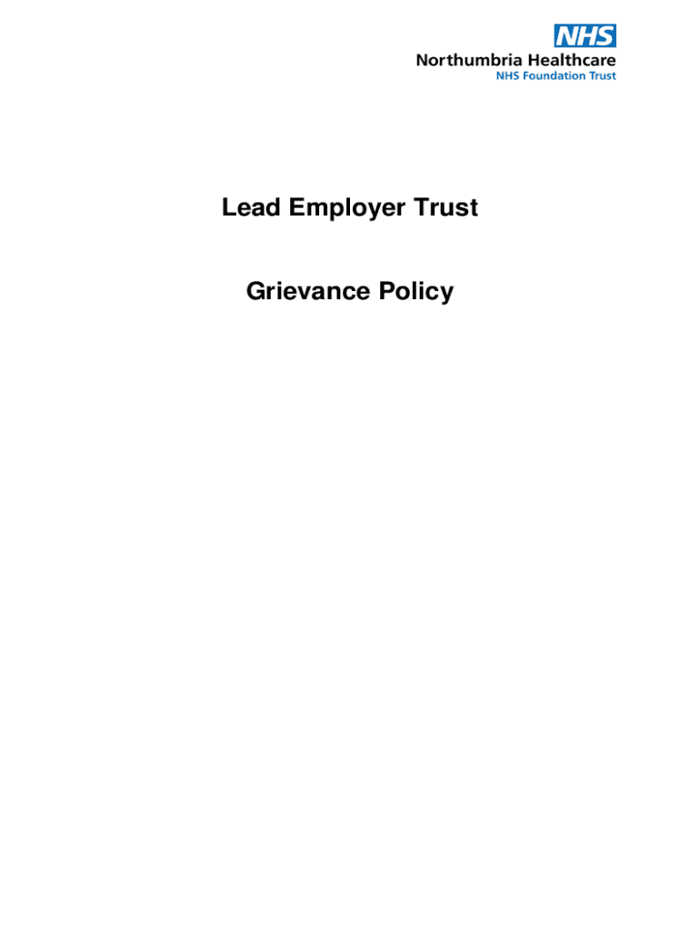 Lead Employer TrustGrievance PolicyPOLICY INFORMATION SHEET