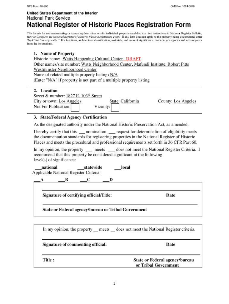Get the free Watts Happening Cultural Center NR Draft - ohp parks ca