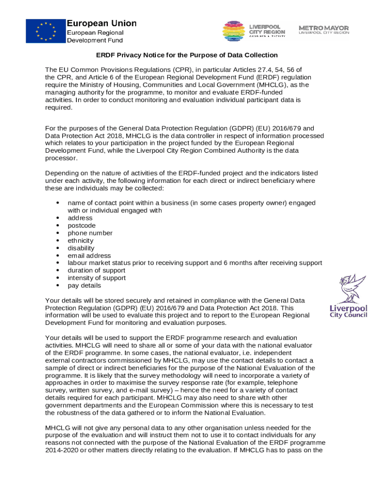What is ERDF Privacy Notice for the Purpose of Data Collection ( ... Form?