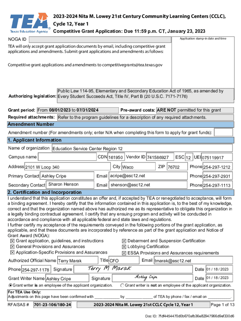 Get the free Name of organization Education Service Center Region 12
