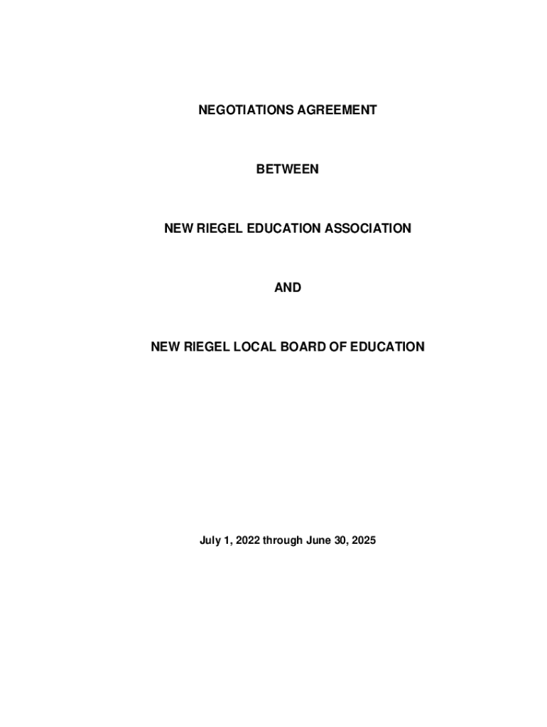 NEGOTIATIONS AGREEMENTBETWEENNEW RIGEL EDUCATION ASSOCIATIONANDNEW RIGEL LOCAL BOARD OF EDUCATION July 1, 2022, through June 30, 2025TABLE OF CONTENTSPART I. NEGOTIATIONS PROCEDURE A. B. C. D. E.