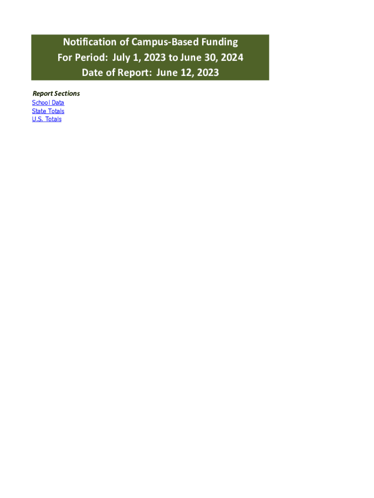Get the free Notification of Campus-Based Funding for the 202324 Award ...