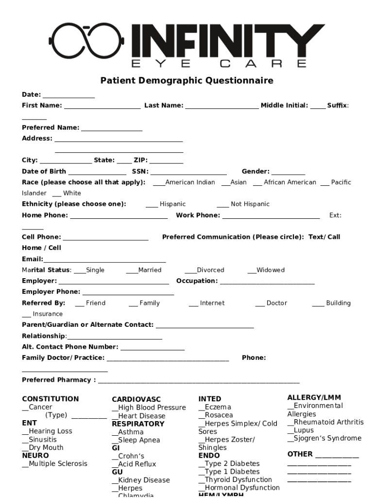 How to fill out New Patient PaperworkDownload / Print - Infinity Eye Care