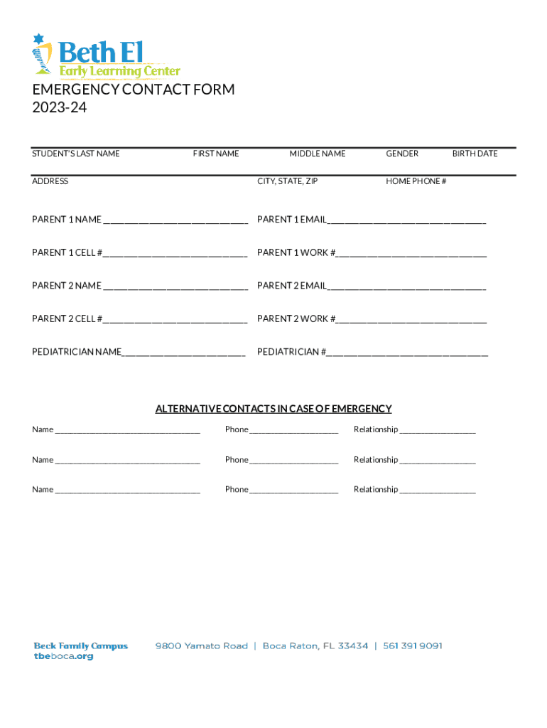 EMERGENCY CONTACT FORM 202324 STUDENTS LAST NAMEFIRST NAMEMIDDLE NAMEGENDERBIRTH DATEADDRESSCITY, STATE, iPhone PHONE #PARENT 1 NAME ___PARENT 1 EMAIL___PARENT 1 CELL #___PARENT 1 WORK #___PARENT