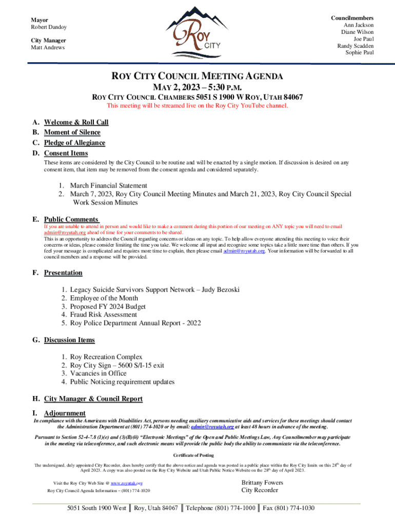 Matt Andrews CITY COUNCIL MEETING AGENDA