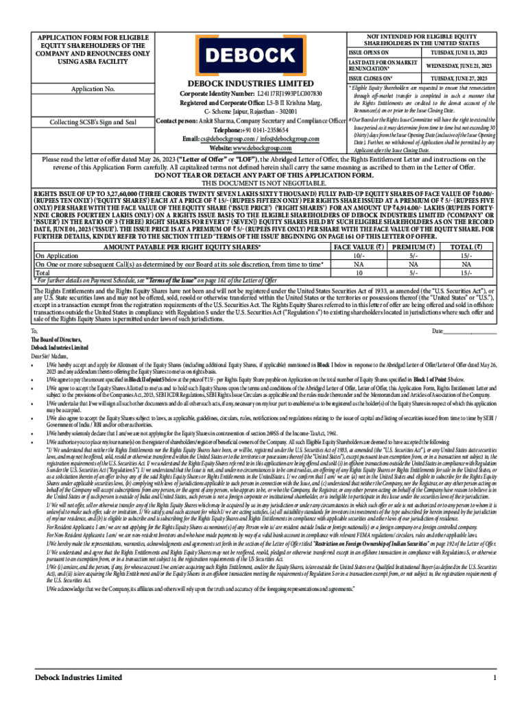 NOT INTENDED FOR ELIGIBLE EQUITY SHAREHOLDERS IN THE UNITED STATESAPPLICATION FORM FOR ELIGIBLE EQUITY SHAREHOLDERS OF THE COMPANY AND RENOUNCES ONLY USING ASIA FACILITY Application No. Collecting