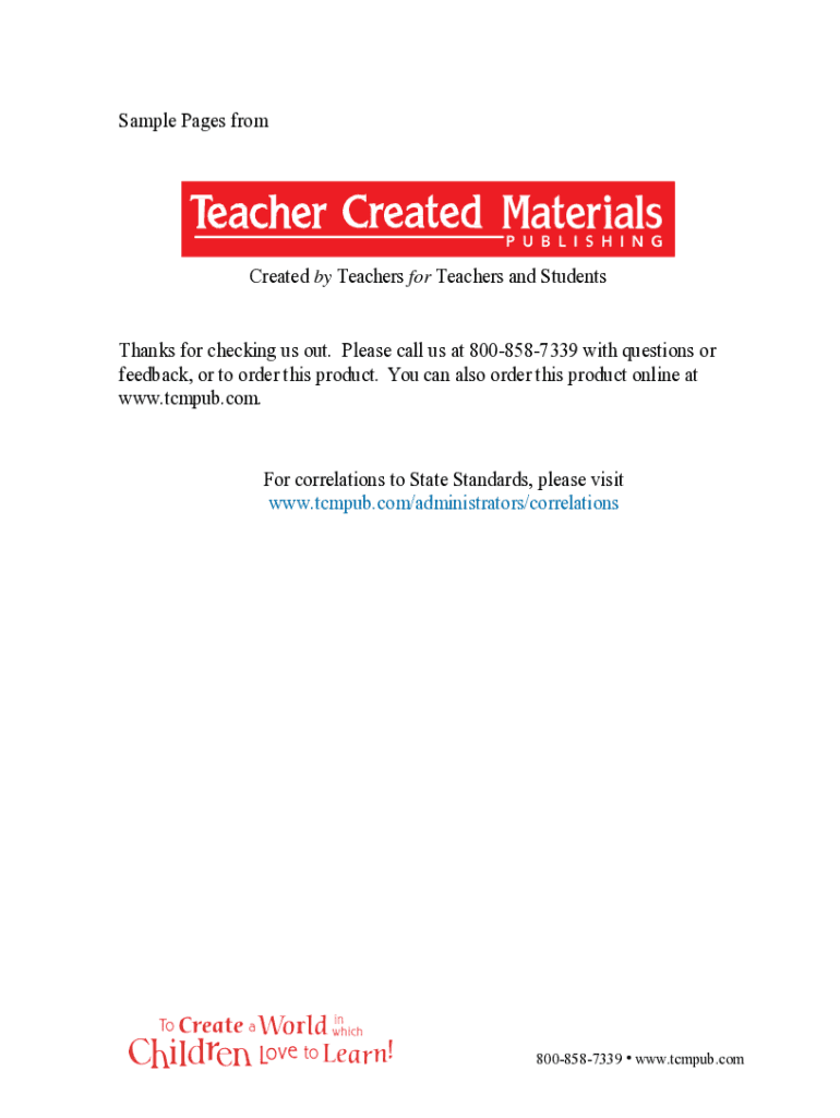 Sample Pages procreated by Teachers for Teachers and StudentsThanks for checking us out. Please call us at 8008587339 with questions or feedback, or to order this product. You can also order this