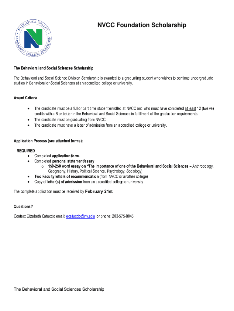 NCC Foundation Scholarship Behavioral and Social Sciences Scholarship The Behavioral and Social Science Division Scholarship is awarded to a graduating student who wishes to continue undergraduate