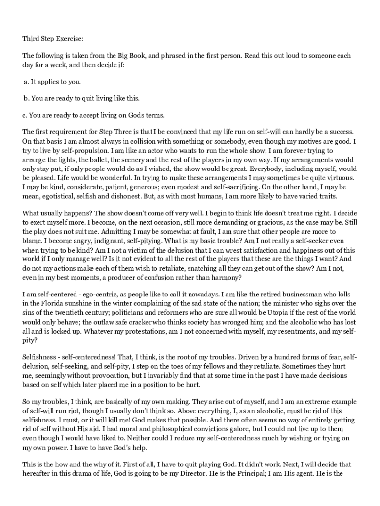 Get the free Breaking Down Step Three of AA Alcoholics Anonymous