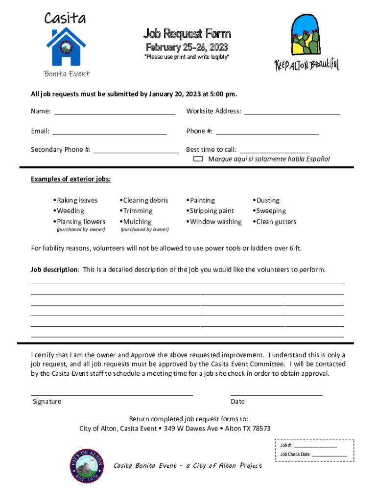 *Please use print and write legibly×All job requests must be submitted by January 20, 2023, at 5:00 pm.