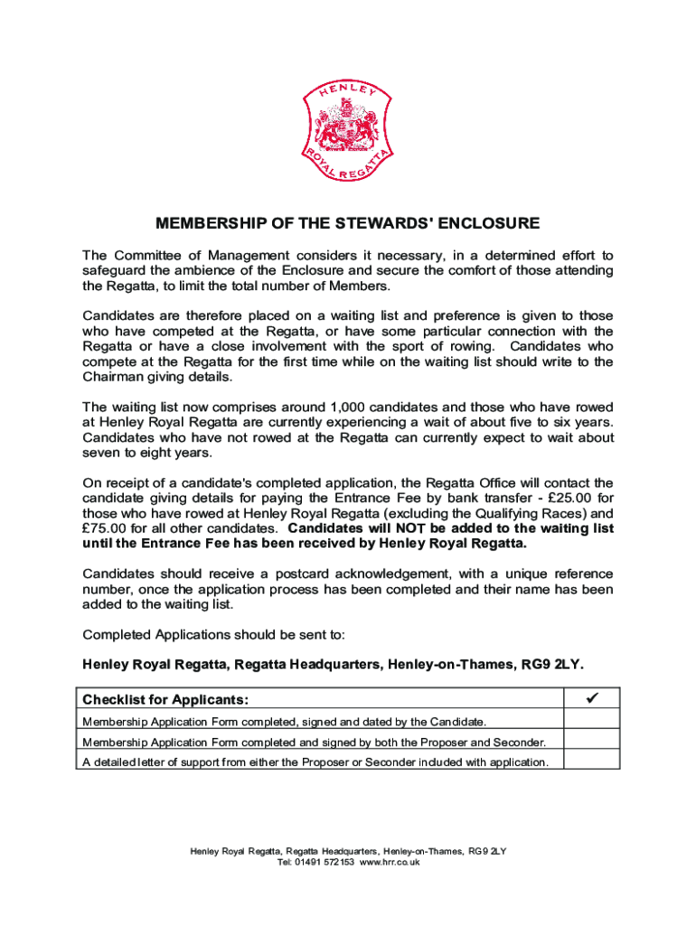 MEMBERSHIP OF THE STEWARDS\' ENCLOSURE The Committee of Management considers it necessary, in a determined effort to safeguard the ambience of the Enclosure and secure the comfort of those attending