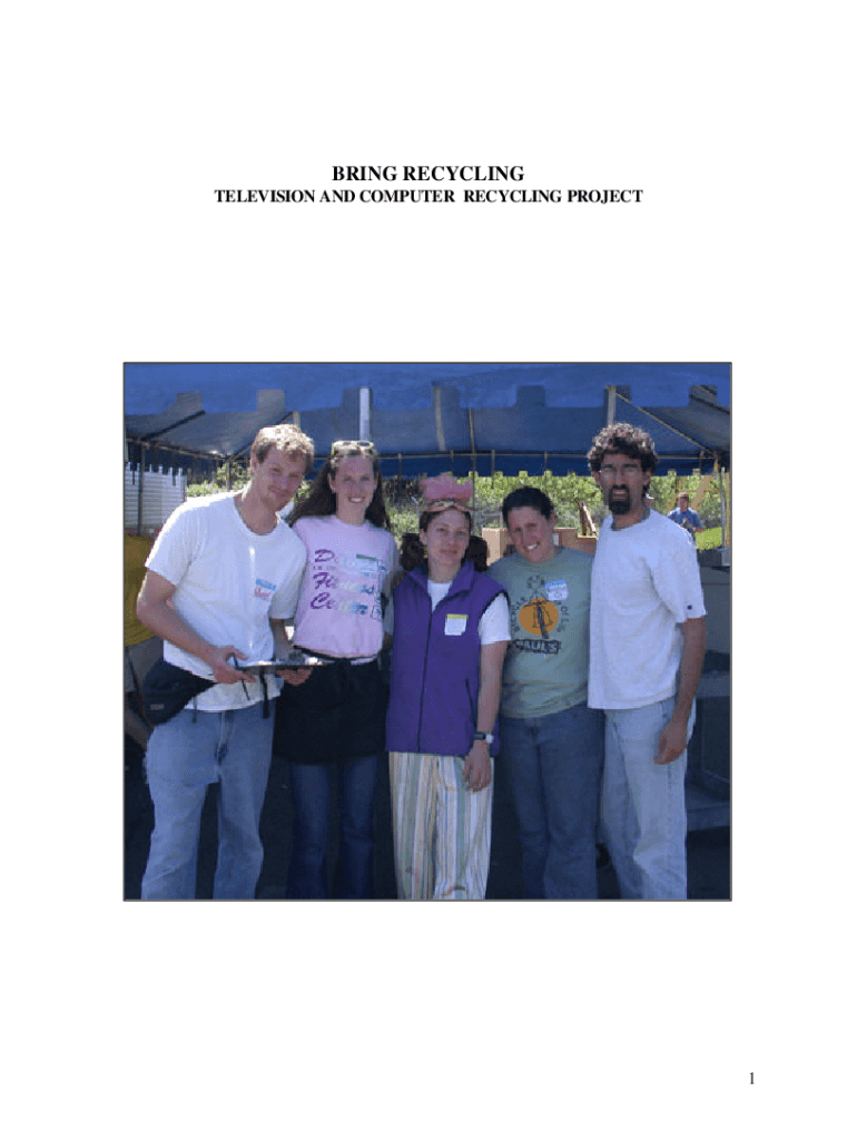 BRING RECYCLING TELEVISION AND COMPUTER RECYCLING PROJECT1BRING RECYCLING TELEVISION AND COMPUTER RECYCLING PROJECTUniversity of Oregon Environmental Studies Service Learning ProgramProject Manager:
