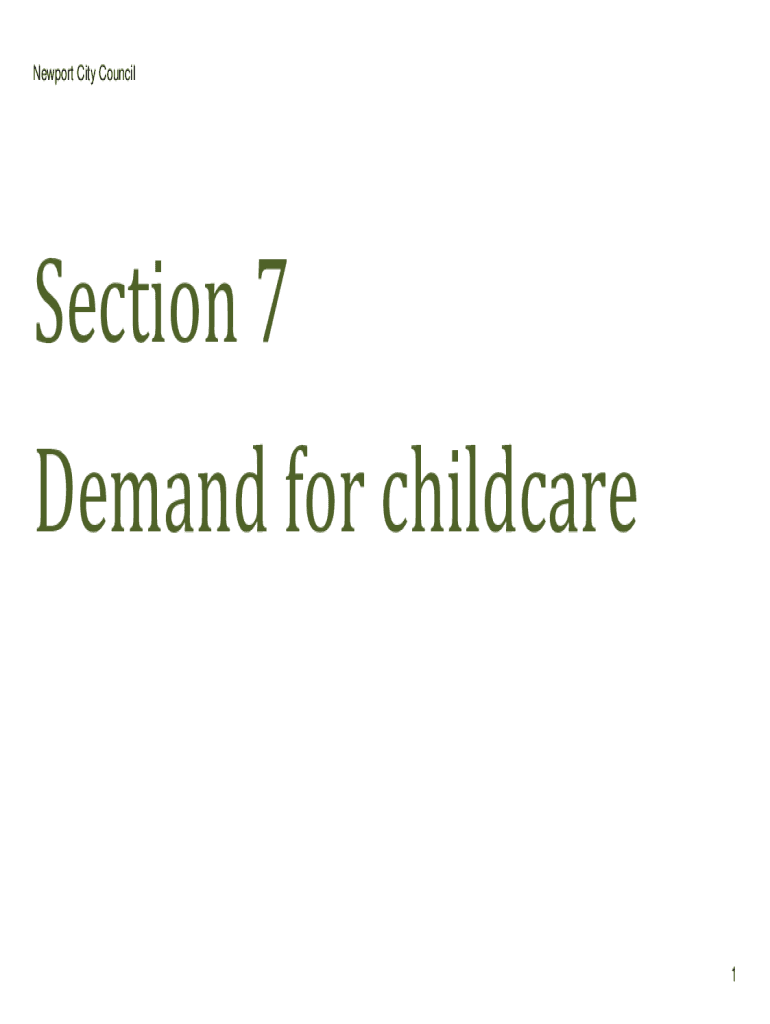 Newport City CouncilSection 7Demand for childcare1Newport City Council7.1 Understanding the Needs of Parents/ Carers In October 2021, a parental survey was published online by Welsh Government that