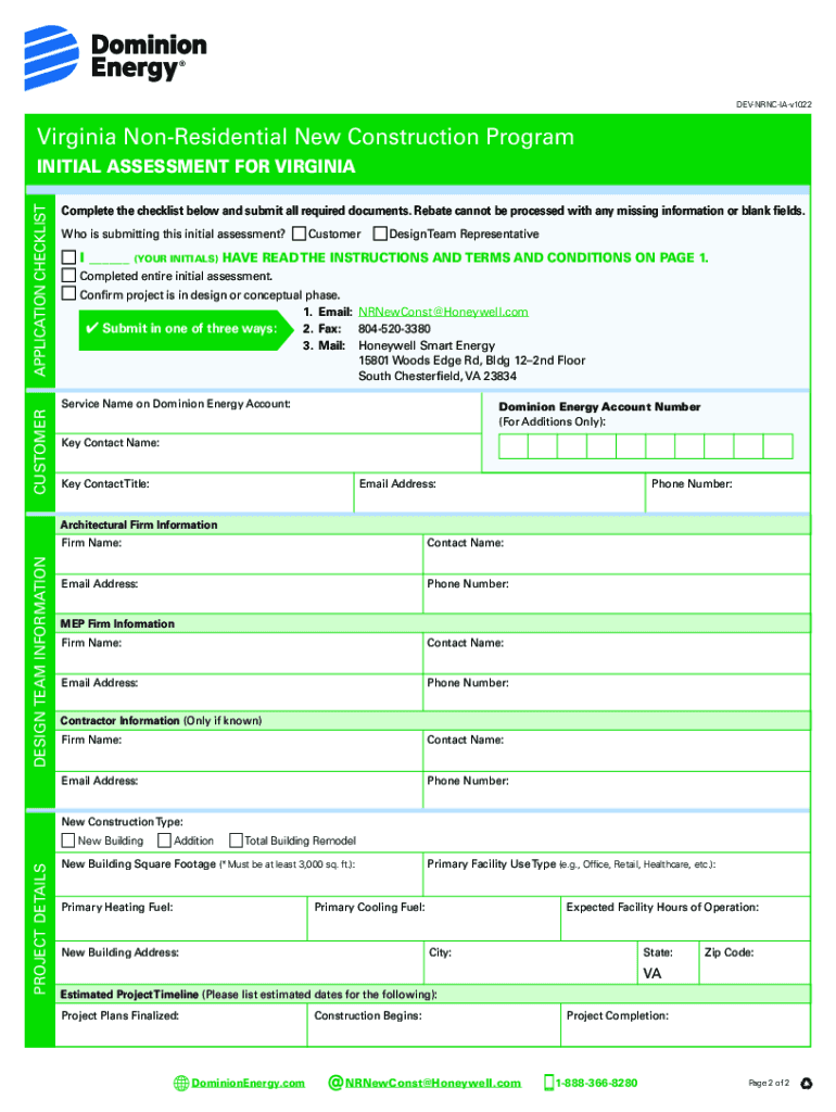 Nonresidential New Construction ProgramInitial Assessment for Virginia DEVNRNCIAv1022INSTRUCTIONS TO APPLY 1. CHECK PROJECT AND EQUIPMENT ELIGIBILITY Read all Terms and Conditions carefully on the