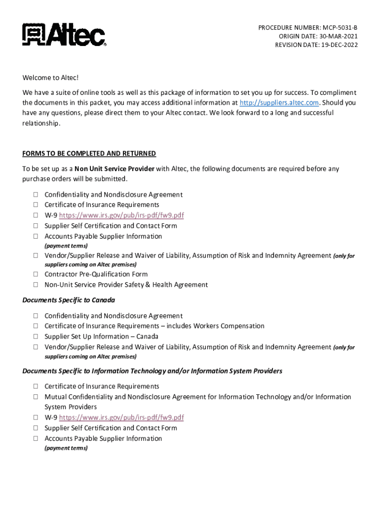 PROCEDURE NUMBER: MCP5031B ORIGIN DATE: 30MAR2021 REVISION DATE: 19DEC2022Welcome to Alter! We have a suite of online tools as well as this package of information to set you up for success. To compliment