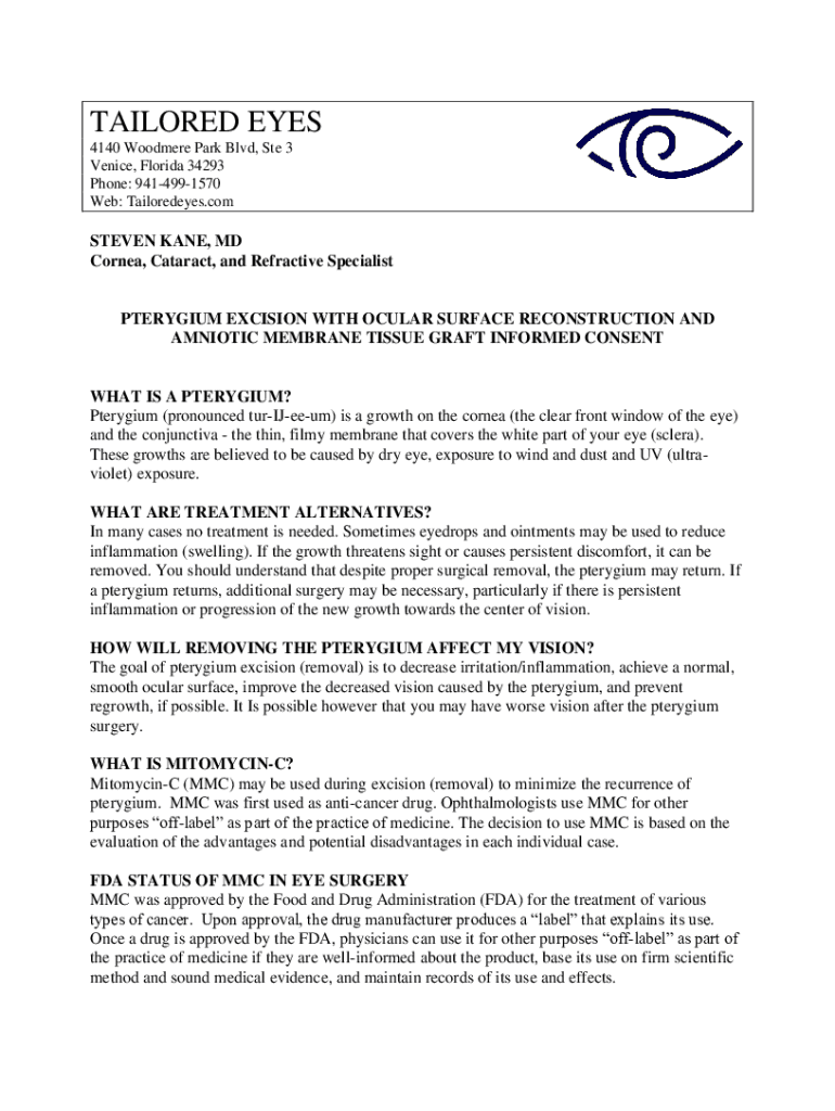 Patients who are undergoing pterygium surgery and want to ensure proper consent and documentation.