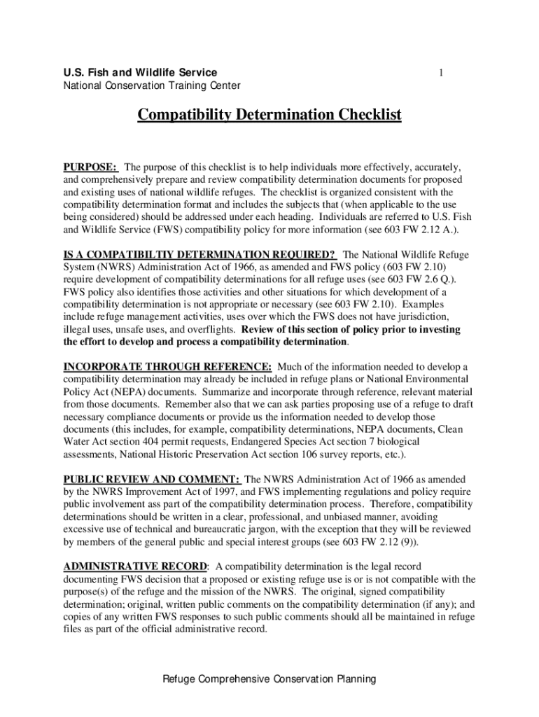 U.S. Fish and Wildlife Service National Conservation Training Center1Compatibility Determination Checklist PURPOSE: The purpose of this checklist is to help individuals more effectively, accurately,