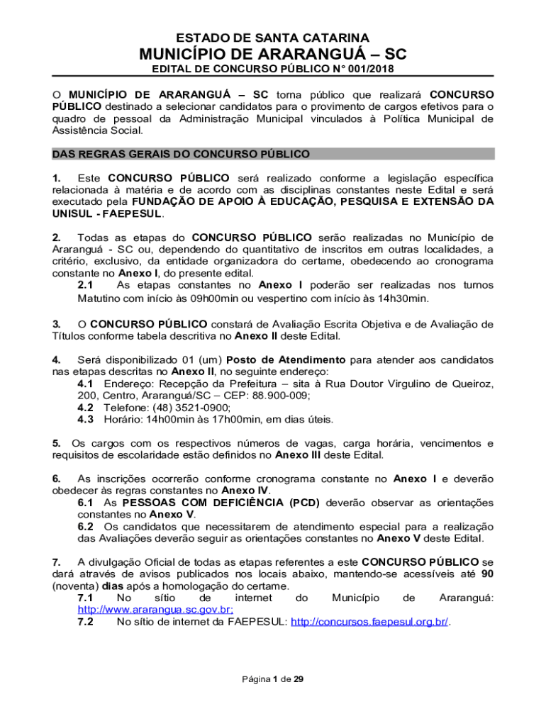 O MUNICIPAL DE ARRANGE SC torn public Que realizer CONCURS